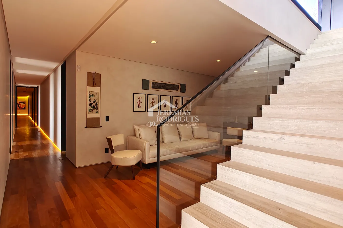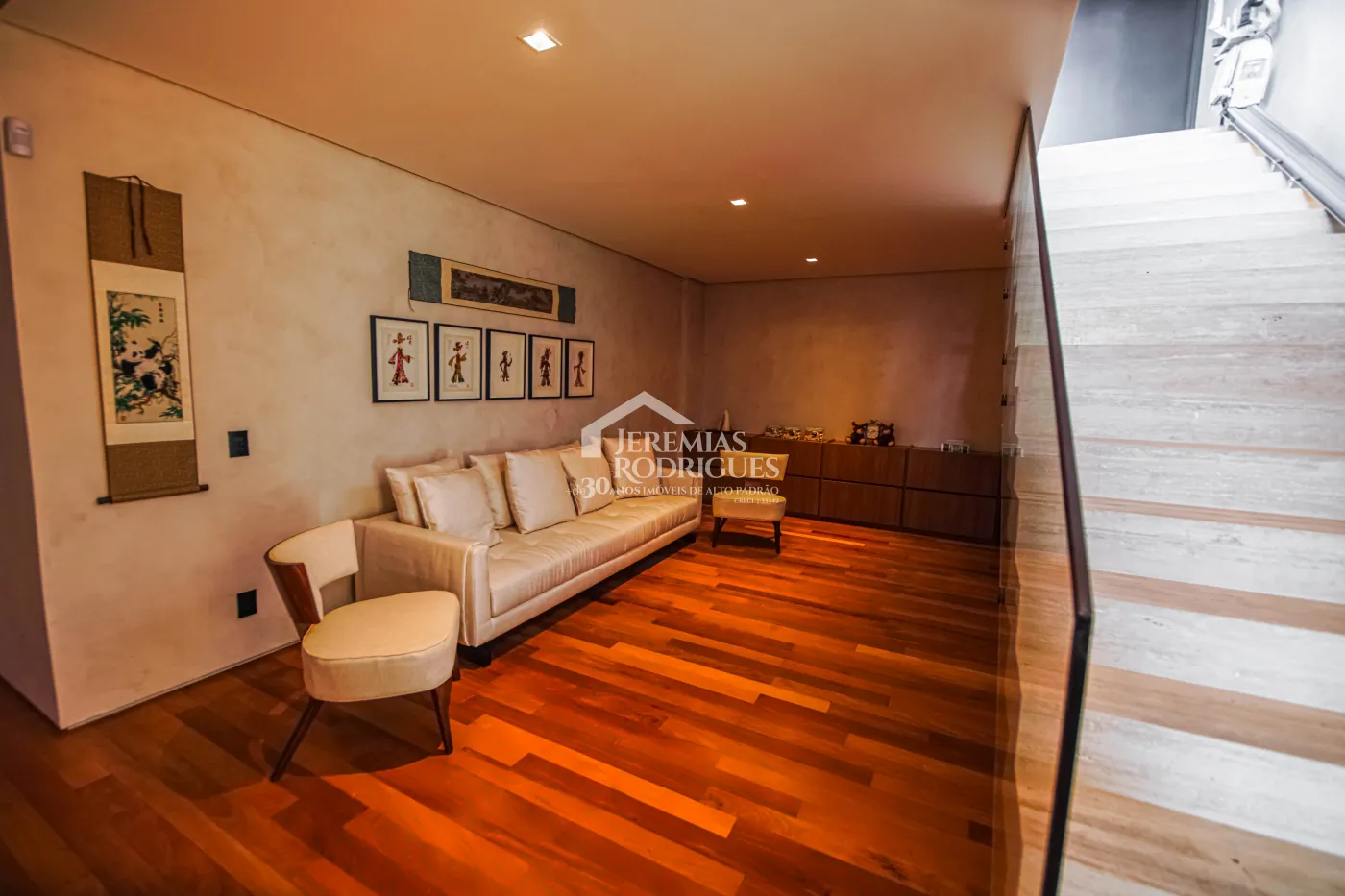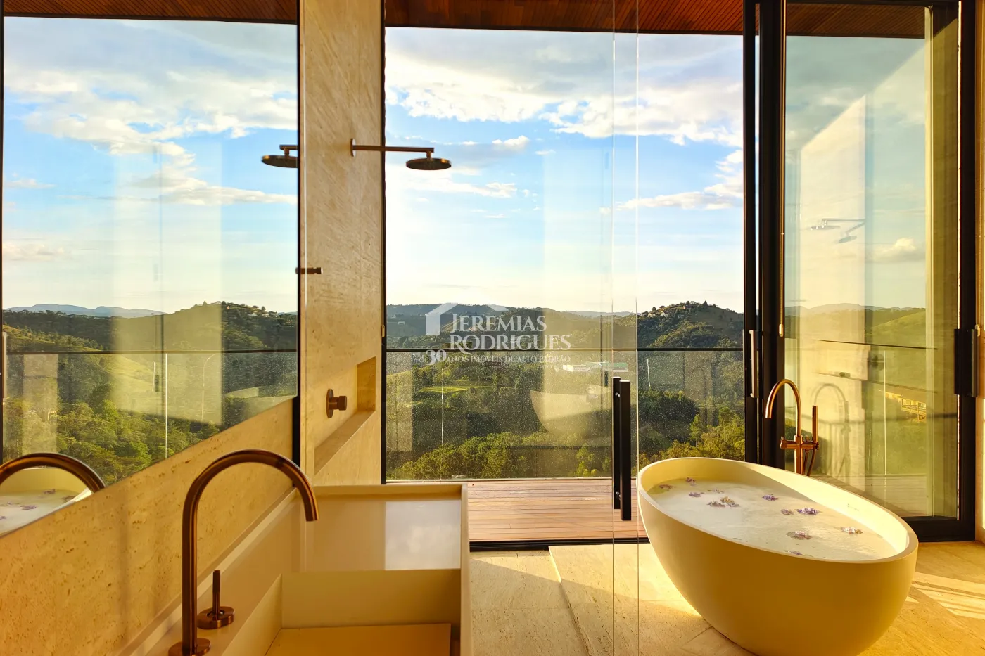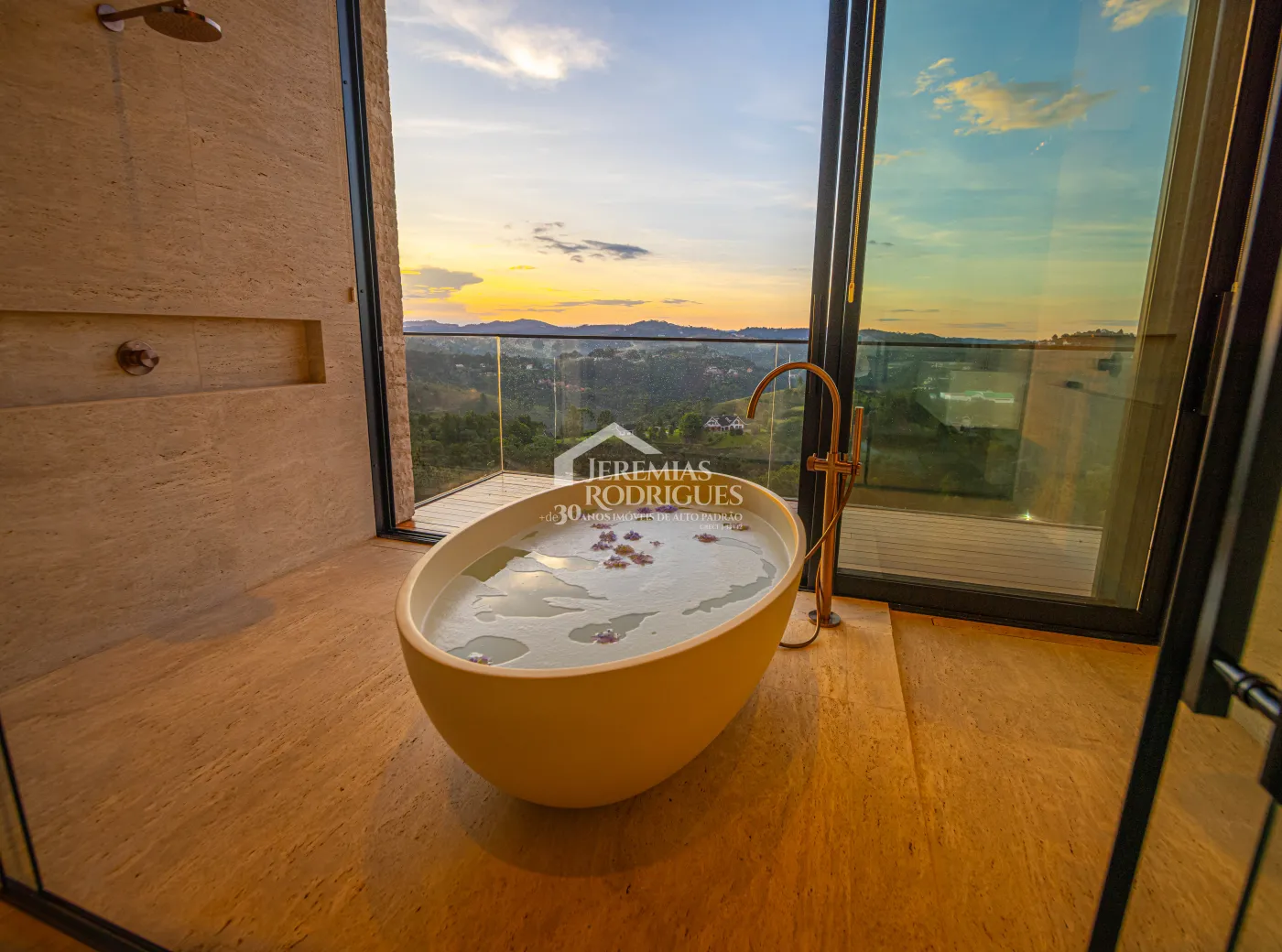 - 04 Suítes, sendo uma Master com telão e vista para a pedra do baú e cama explica e UNICA dos Irmãos Campana, mais 03 suítes sendo uma utilizada atualmente como escritório. Todas as suítes contam com banheiros equipados que aquecimento de piso, aquecedores de toalhas, mobiliários Vallve, e metais Hansgrohe. Os quartos possuem cama super king com pilou top em pluma de ganso e toda rouparia Trousseau personalizada, contam também com sistema de som e vídeo, aquecimento no piso e armários Kitchens.