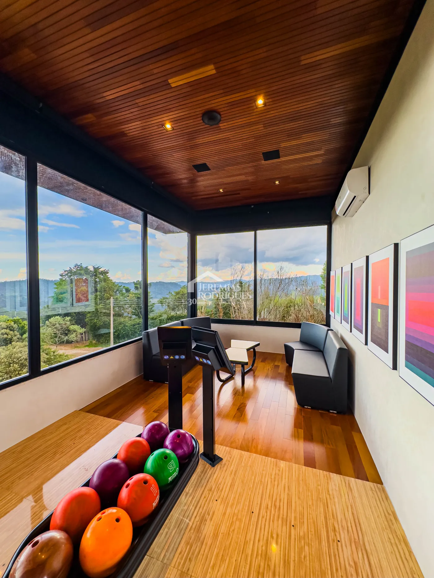 - Home Theater com sistema de som de primeira geração, TV 80 polegadas.