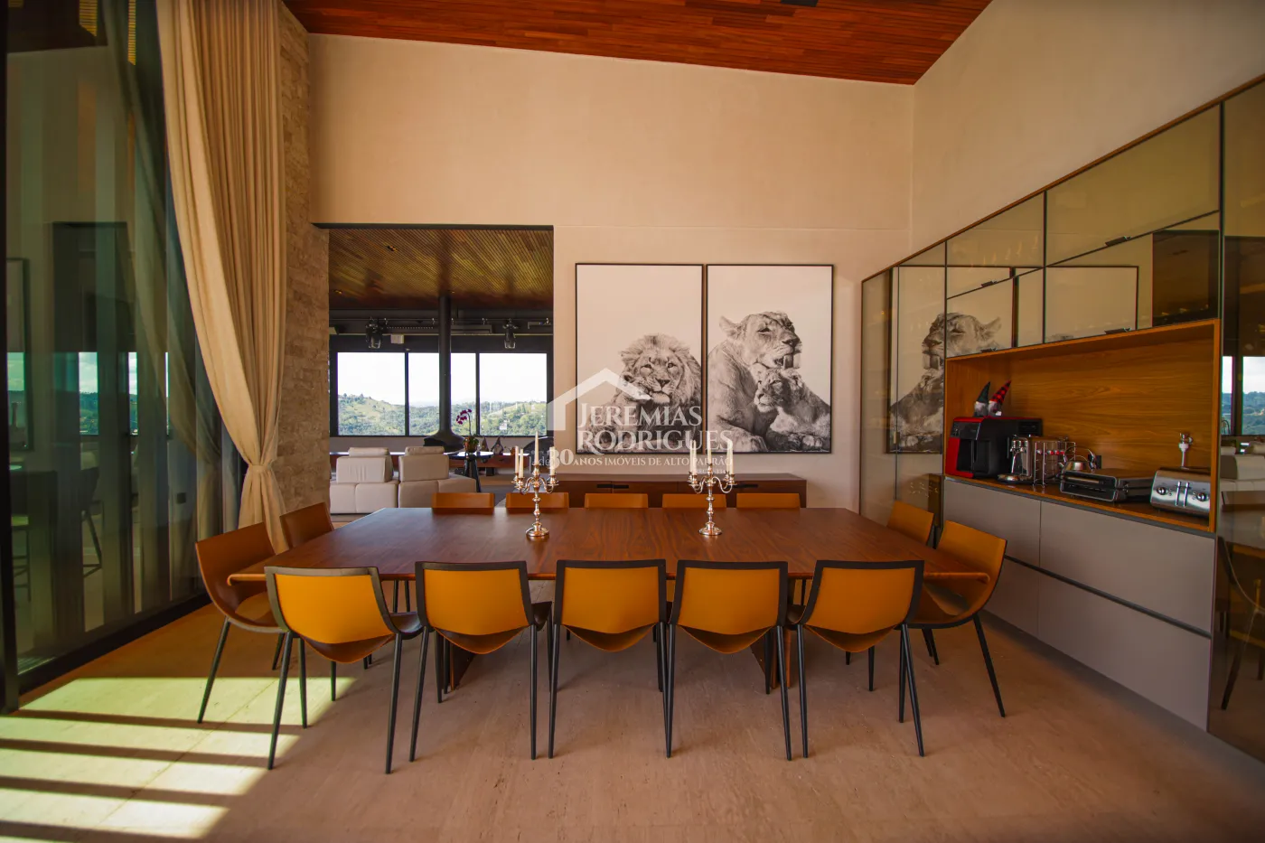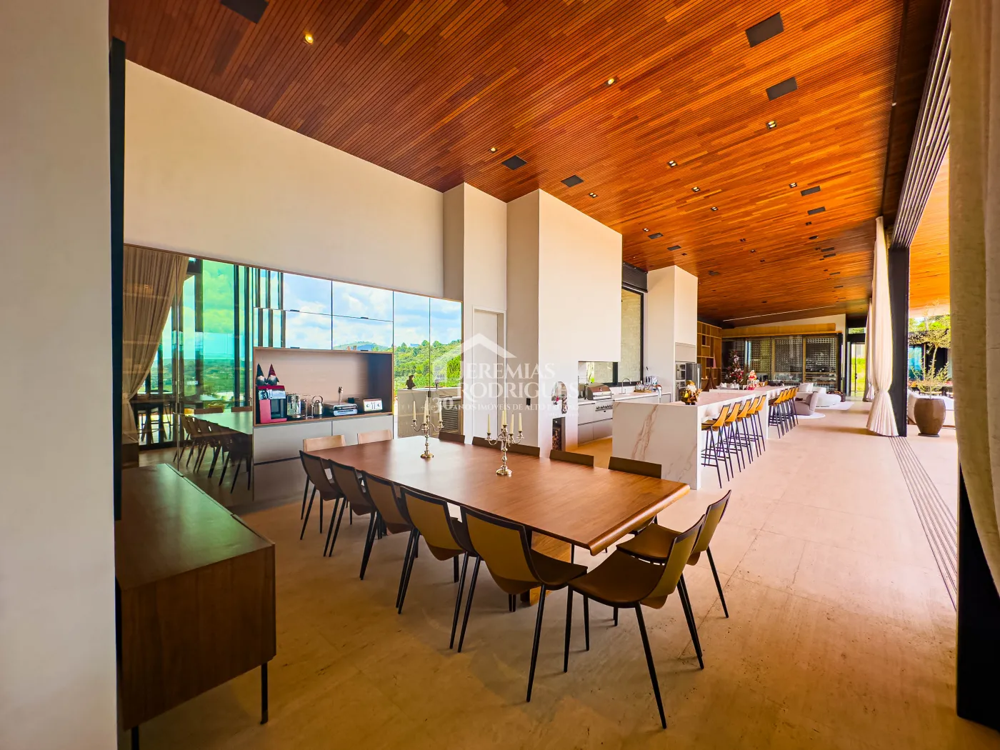 - Churrasqueira Coberta com mesa Dedon by Stark para até 14 pessoas e varanda integrada com mobiliário Casual Exteriores e aquecedores italianos a gás.