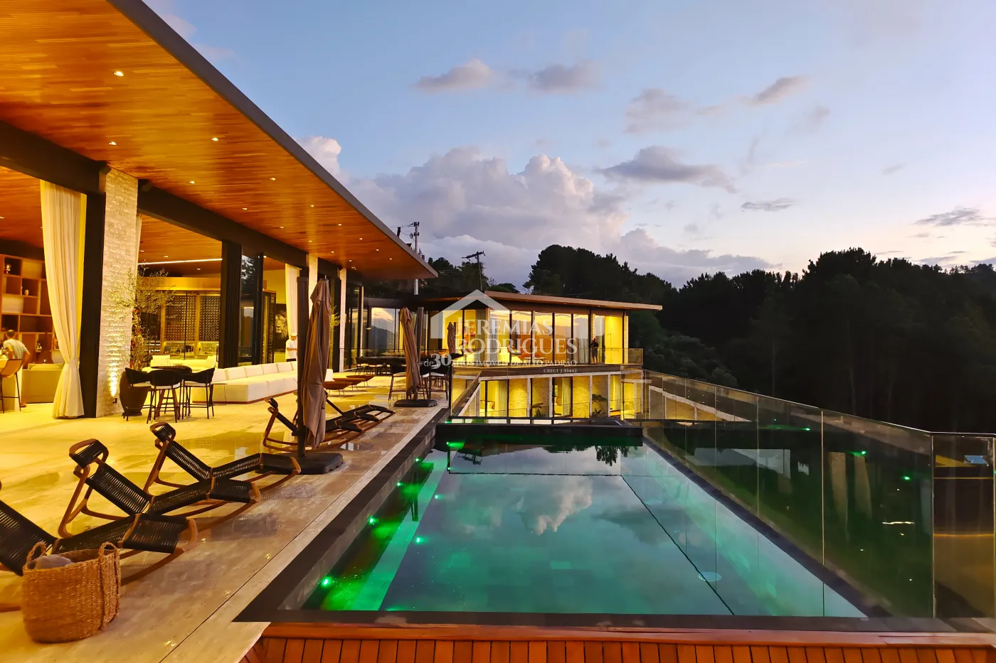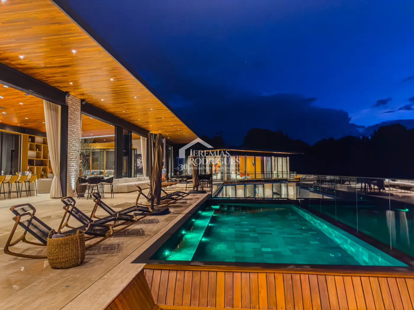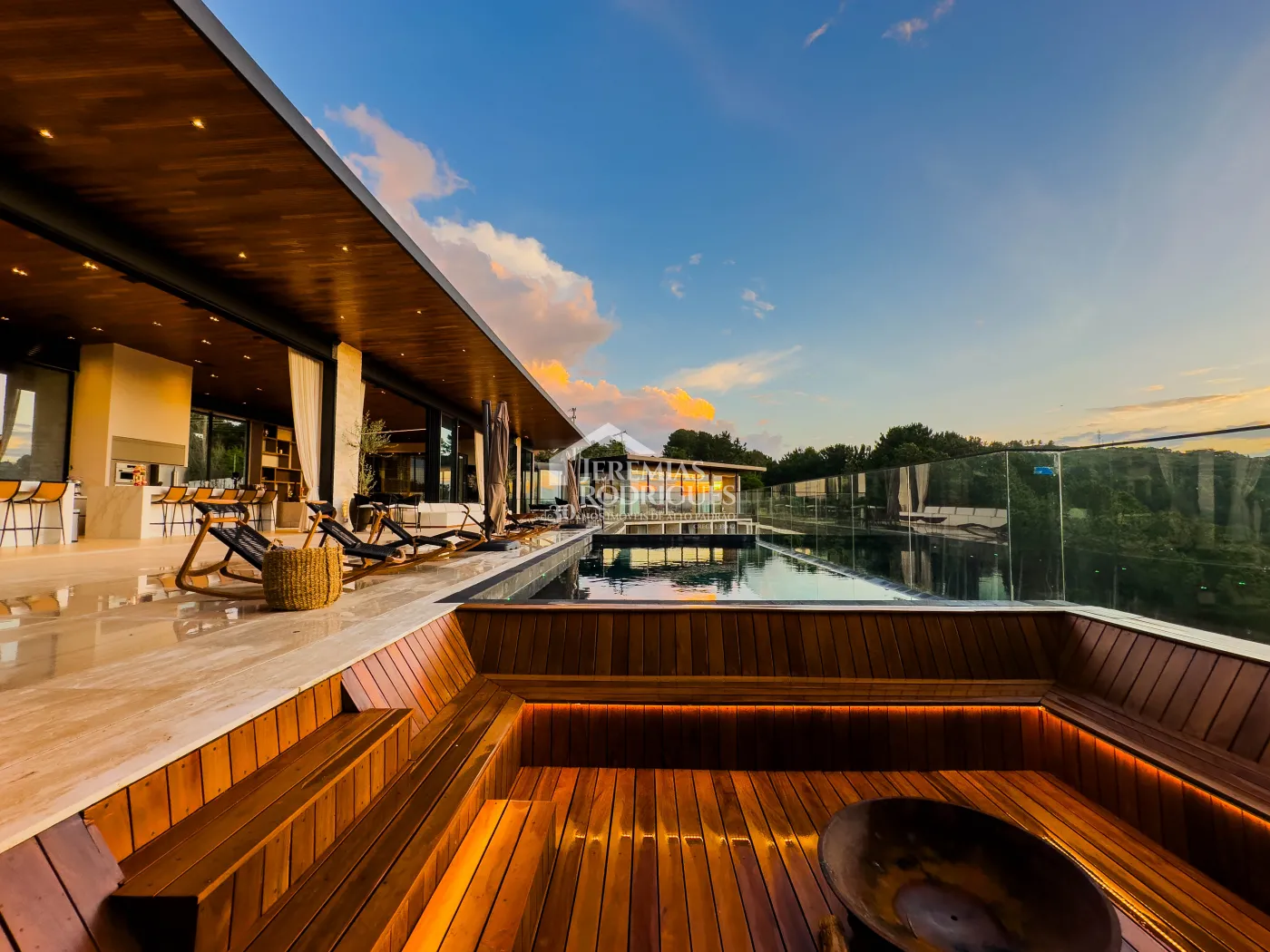 - Spa Externo para aproximadamente 10 pessoas integrado com um ambiente contendo lareira externa e um telão retrátil em Led de 160 polegadas.