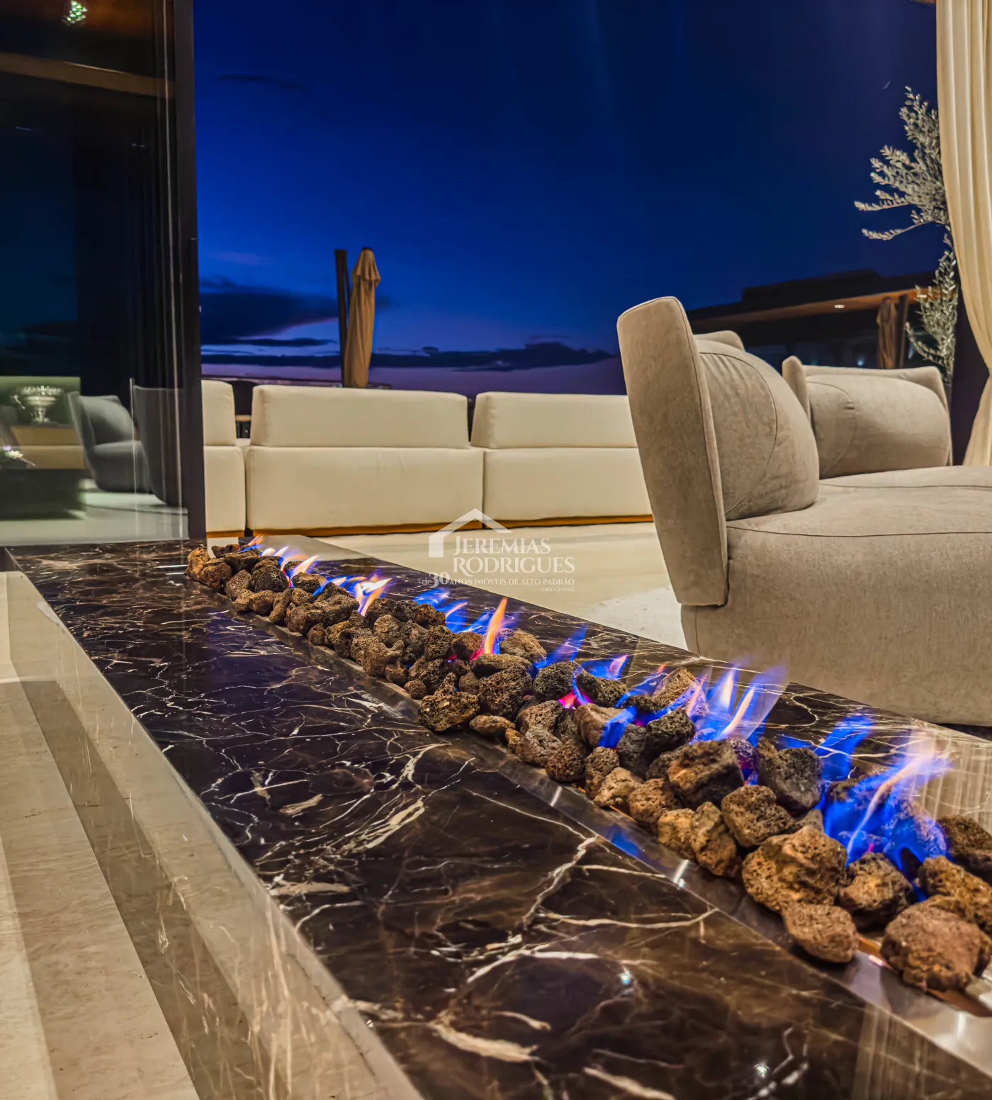 - Lareira Externa a gás e coberta, com mobiliário alemão Dedon.